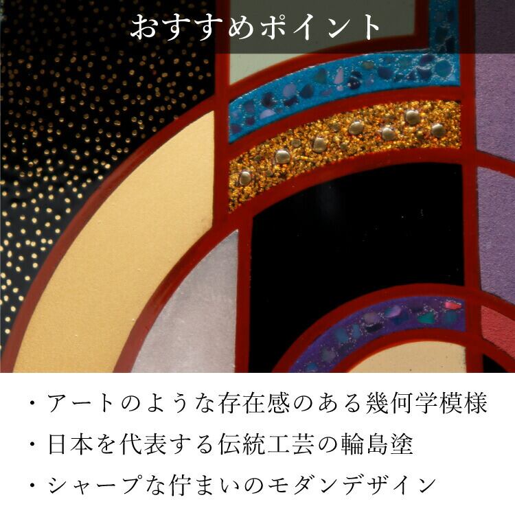輪島塗のおしゃれなモダン位牌です。鮮やかな色彩と大胆なデザインの蒔絵は唯一無二の華やかな高級感を演出します。特別感のある手元供養にもおすすめです。