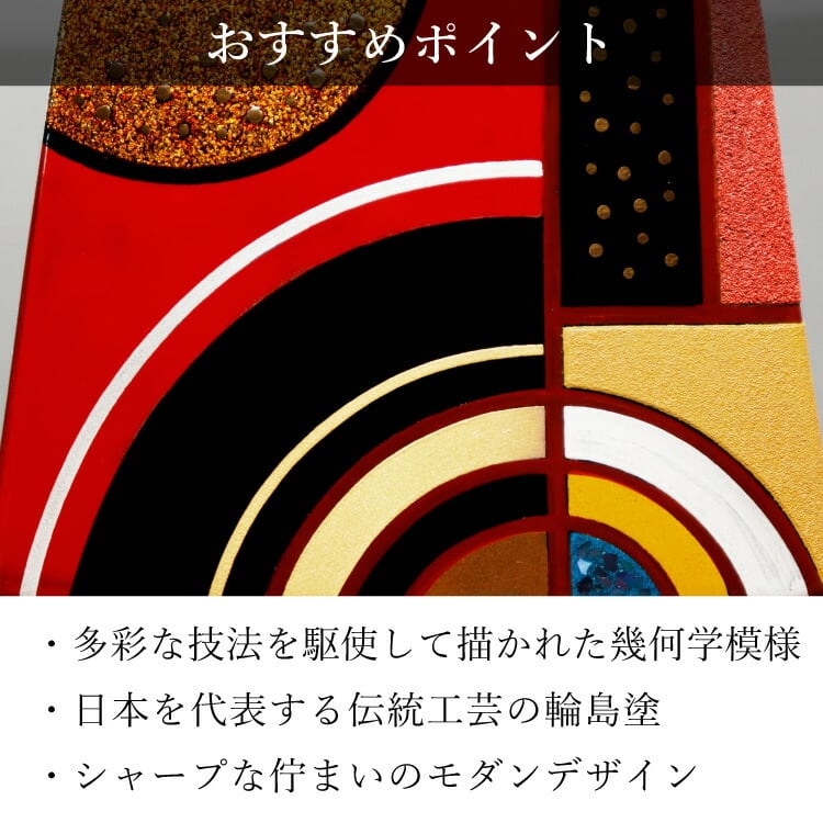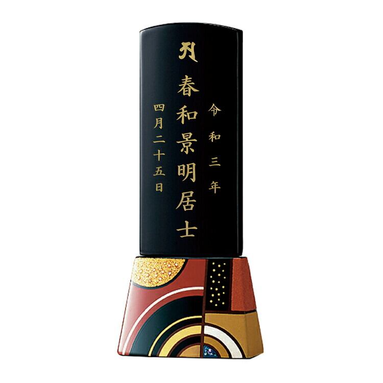 輪島塗のおしゃれなモダン位牌です。鮮やかな色彩と大胆なデザインの蒔絵は唯一無二の華やかな高級感を演出します。特別感のある手元供養にもおすすめです。