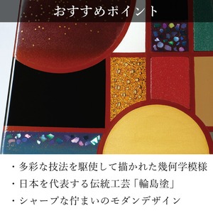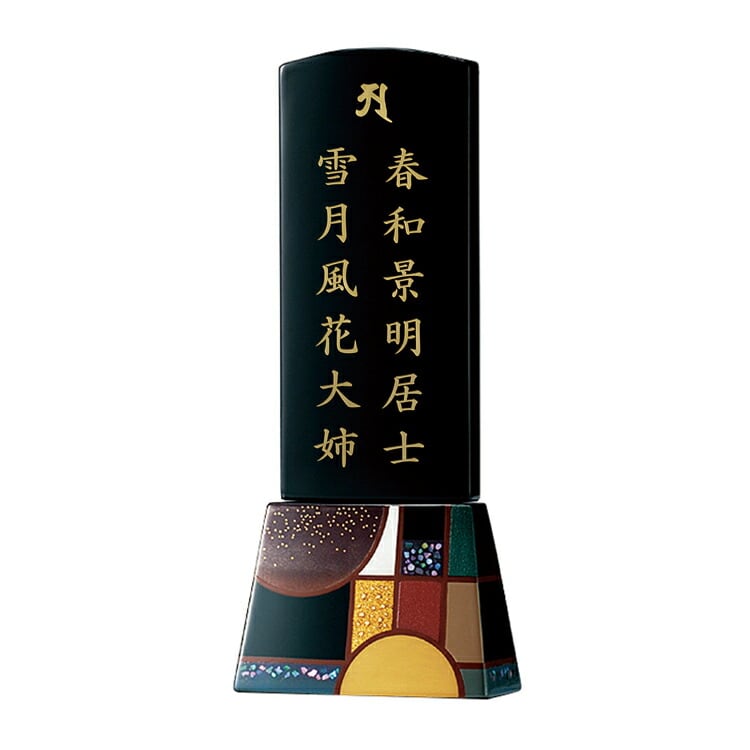 輪島塗のおしゃれなモダン位牌です。鮮やかな色彩と大胆なデザインの蒔絵は唯一無二の華やかな高級感を演出します。特別感のある手元供養にもおすすめです。