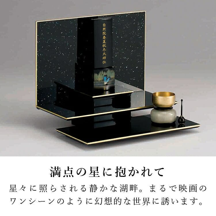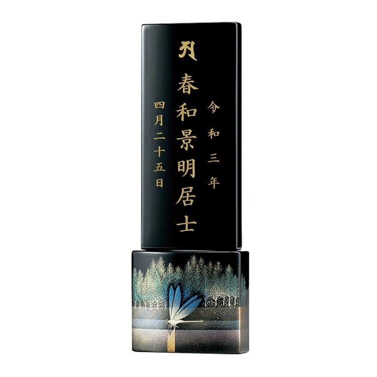 輪島塗のおしゃれなモダン位牌です。大自然の中で生命がかがやく一瞬を沈金で描いた高級感あふれるデザインです。特別感のある手元供養にもおすすめです。