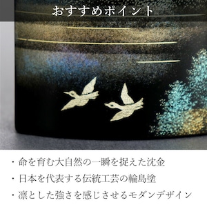 輪島塗のおしゃれなモダン位牌です。大自然の中で生命がかがやく一瞬を沈金で描いた高級感あふれるデザインです。特別感のある手元供養にもおすすめです。