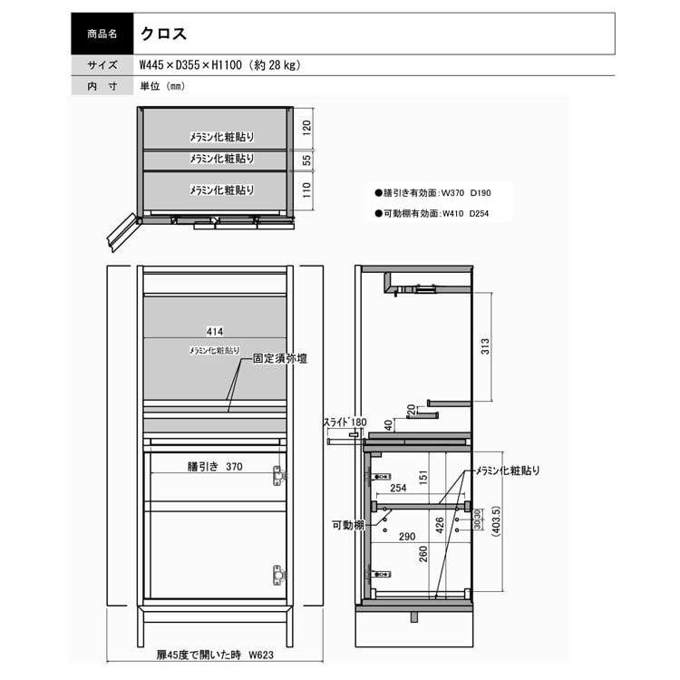 ■サイズ:幅45.5cm奥行35.3cm高さ110cm