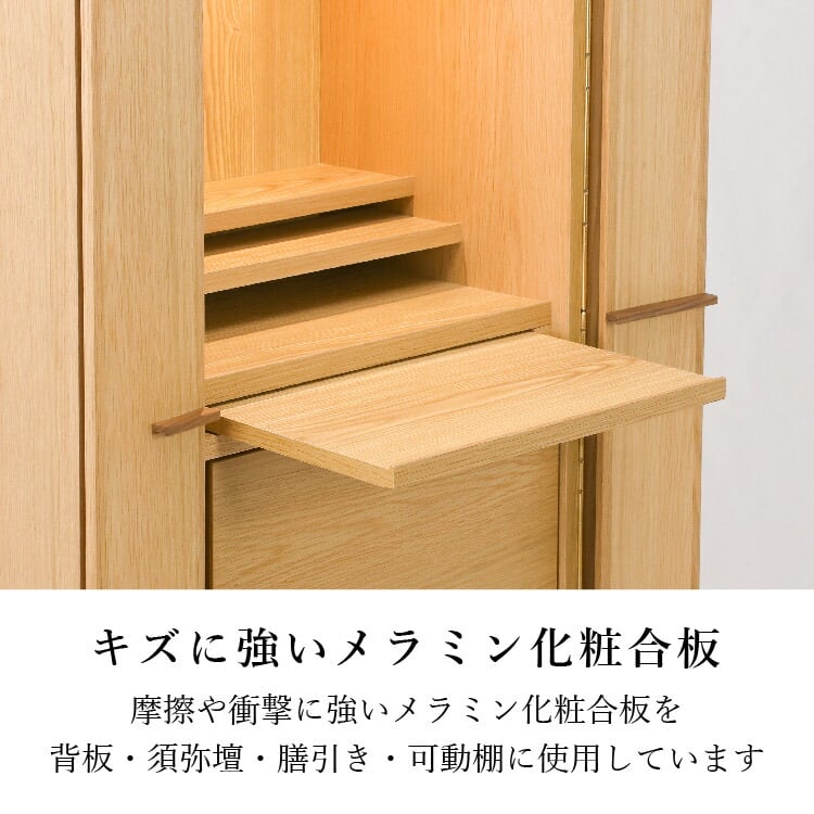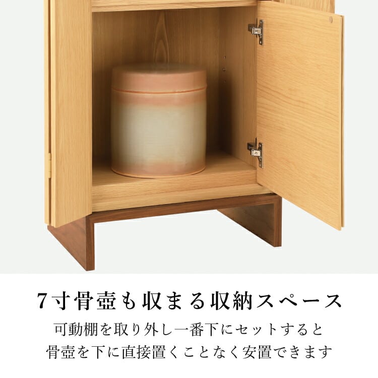 ※ご注意事項:脚部組立式ゆとりのある収納には7寸骨壺がカバー付きで収納できます。
