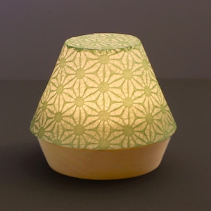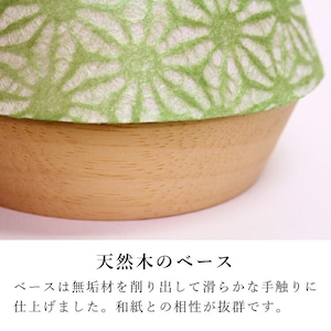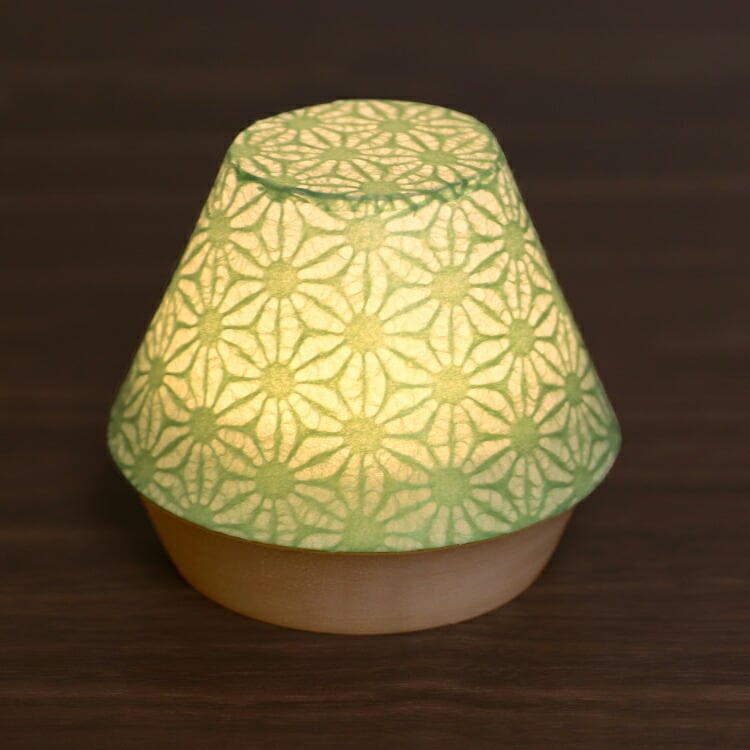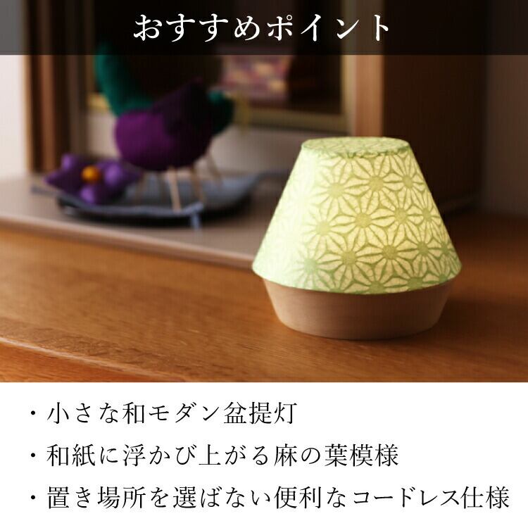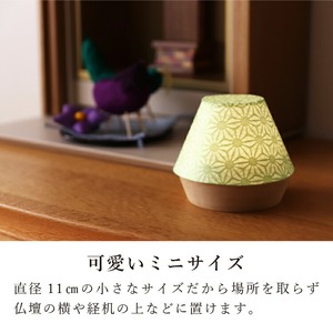 コードレスのミニ盆提灯。明かりに浮かび上がる麻の葉模様が和モダン。コンパクト仏壇や卓上に置ける小さいサイズです。お盆以外にも、かわいいインテリアとしてご使用頂けます。