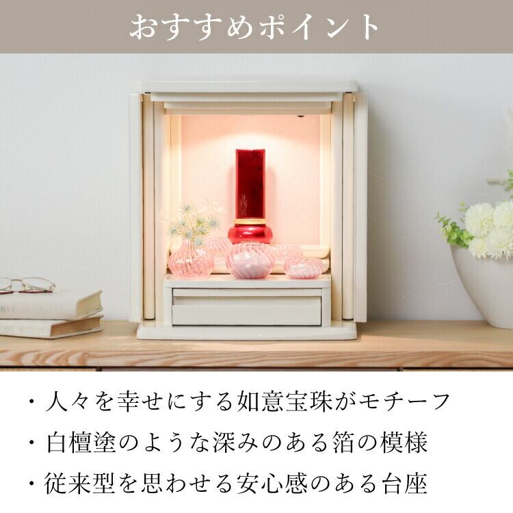 宝珠がモチーフのモダン位牌。塗装の奥から金属箔の模様が浮かび上がります。洗練された雰囲気と高級感のあるおしゃれなデザイン。文字入れを別途承ります。