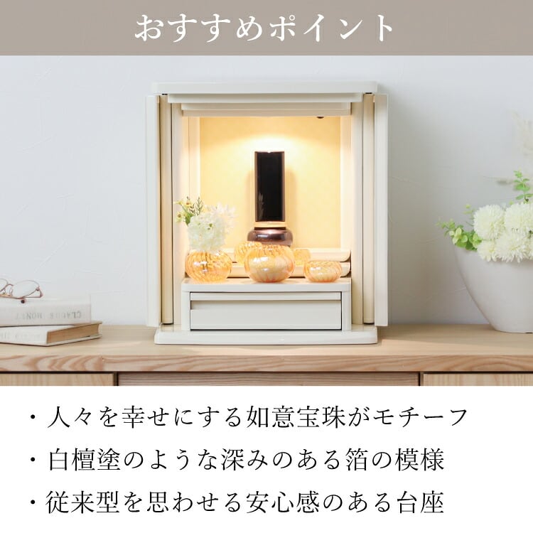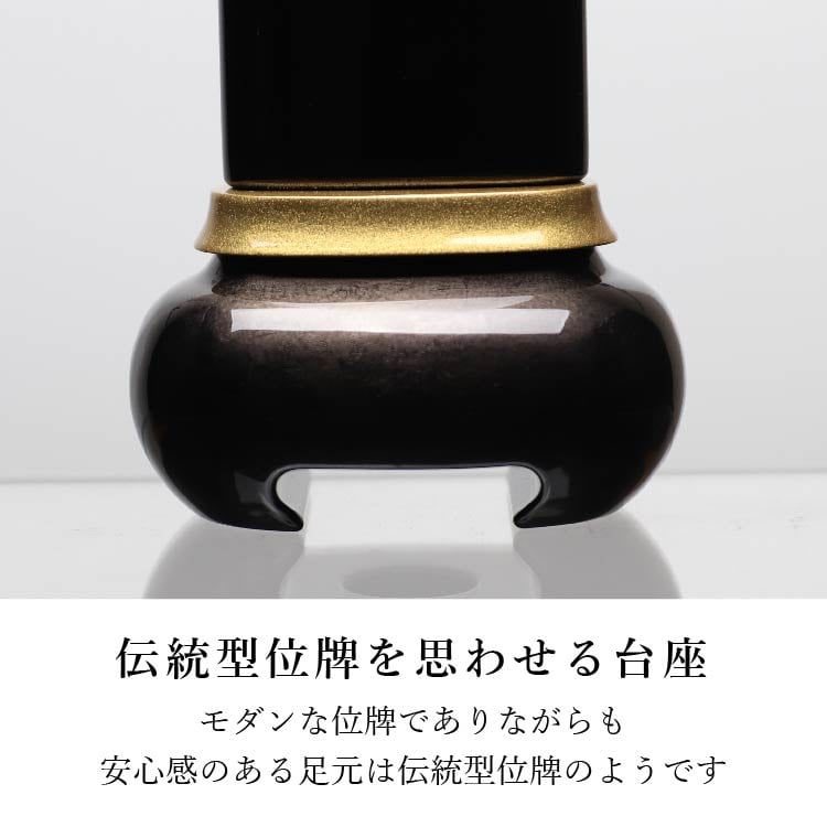 宝珠がモチーフのモダン位牌。塗装の奥から金属箔の模様が浮かび上がります。洗練された雰囲気と高級感のあるおしゃれなデザイン。文字入れを別途承ります。