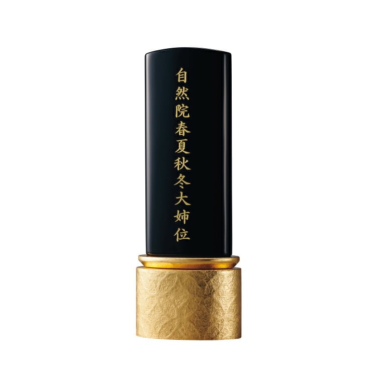 おしゃれなモダン位牌。金色の台座にかわいい七宝柄が浮かび上がります。コンパクトで夫婦位牌の名入れができるので小さい仏壇や手元供養にもおすすめです。